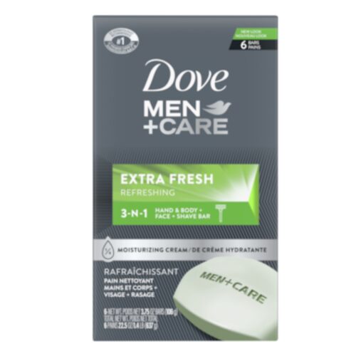 Dove Men+Care Extra Fresh 3 In 1 (Hand & Body + Face + Shave) Bar Soap – 3.75 Ounce(PACK OF 6)