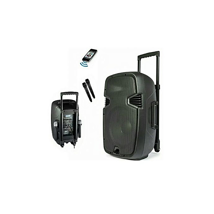 Portable speaker with 2 wireless microphones, Bluetooth, USB and SD mouth.