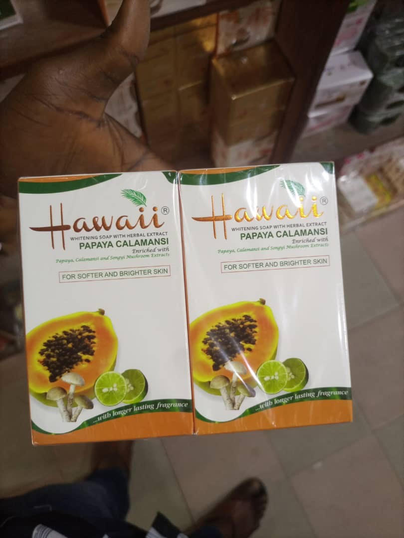 HAWAII Whitening and Exfoliating Soap is specially formulated, with purely combined herbal ingredients. Calamansi extract which naturally whitens delicate skin and Papaya Extracts that subtly exfoliates dead skin cells resulting from harsh climatic and environmental conditions. This leaves the skin whiter, smoother, more radiant and ever younger, with a pleasant long-lasting fragrance! With Vitamin E Antioxidant, enriched with Symmollient and Symwhite plus for a perfect body experience.
