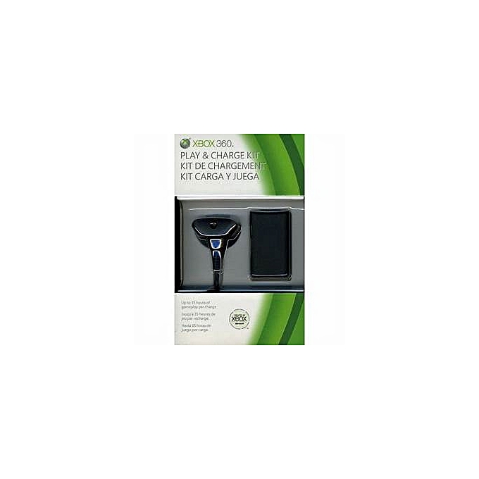 Match the sleek black design of your Xbox 360 Elite console and recharge your Xbox 360 Wireless Controller while you play so you can kiss disposable batteries goodbye! Now available in black and complete with a charging cable and rechargeable battery pack, the Xbox 360 Play and Charge Kit is all you need to juice up your Xbox 360 Wireless Controller-even in the midst of battle.