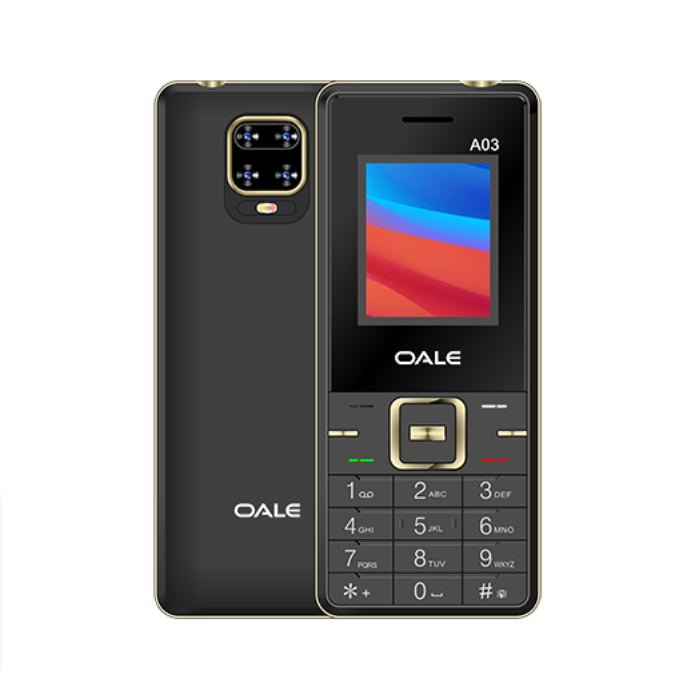 Oale A03 1.77 Inches Screen, Dual Sim, Battery 2000mAh – FM Radio, Torch light – Gold