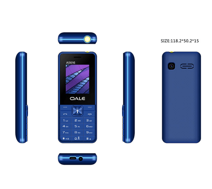 Oale A5616 1.77 Inches Screen, Dual Sim, Battery 2500mAh – FM Radio, Torch light – Blue
