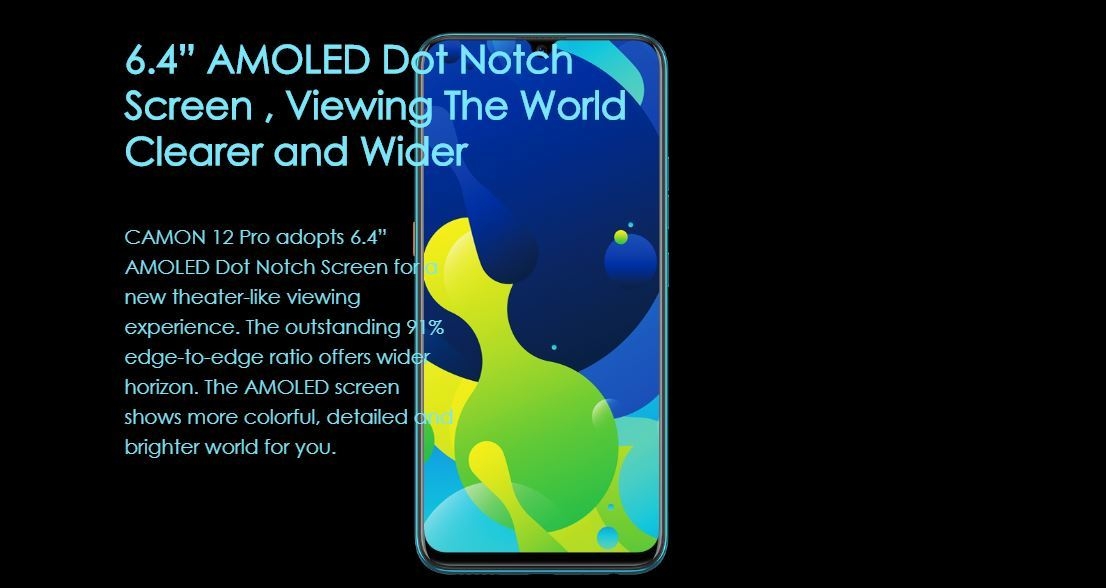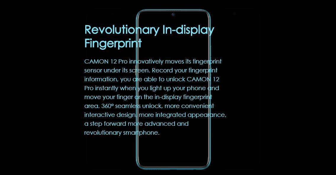 Introducing the TECNO CAMON 12 PRO with a Dot-in Notch AMOLED Display and an in-display fingerprint reader.