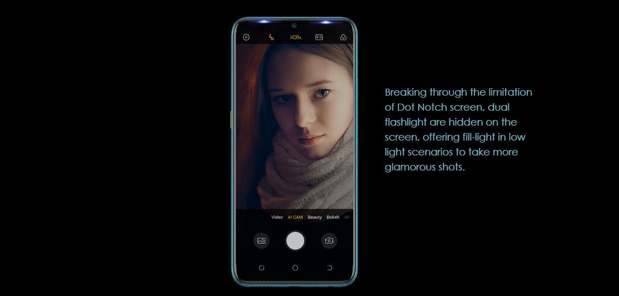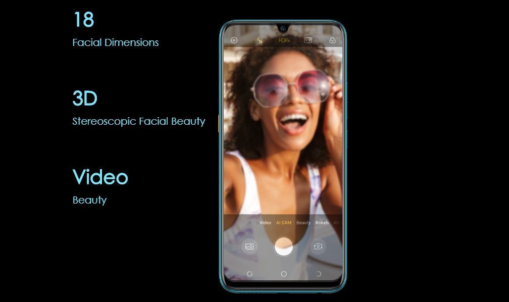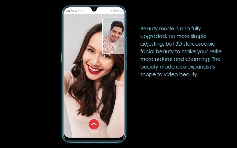 - Front-facing Camera: 32 MP, f2.0 Aperture, AI Face Recognition, AR Graffiti, Dual Air Gap flashlight, 1080p@30fps video capture.