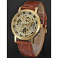 WINNER Men’s Wrist Watch Mechanical manual-winding 30 m Hollow Engraving Cool Leather Band Analog Luxury Vintage Casual Brown.